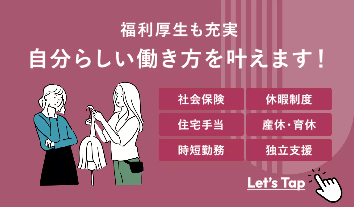 住宅手当(交通費支給の場合は適応外)/産休・育休制度/独立支援制度